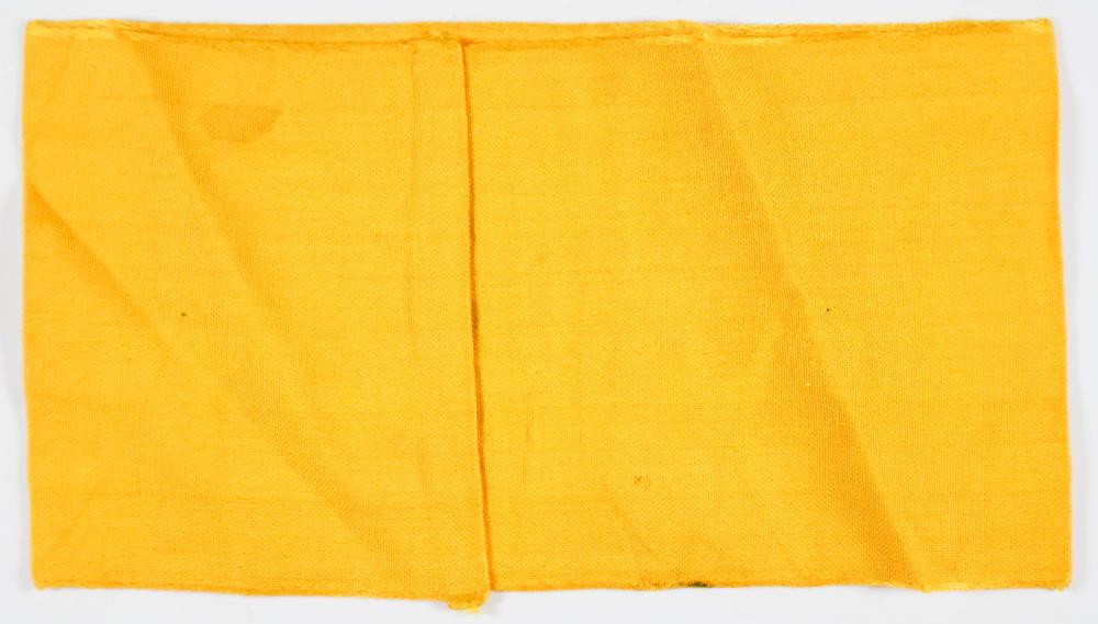 A German volunteer armband, constructed of yellow cotton with a Bevo woven ‘Deutsche Wehrmacht’ in the center. The entire piece measures 15 x 4 in. with joined ends. Lightly soiled, otherwise fine.