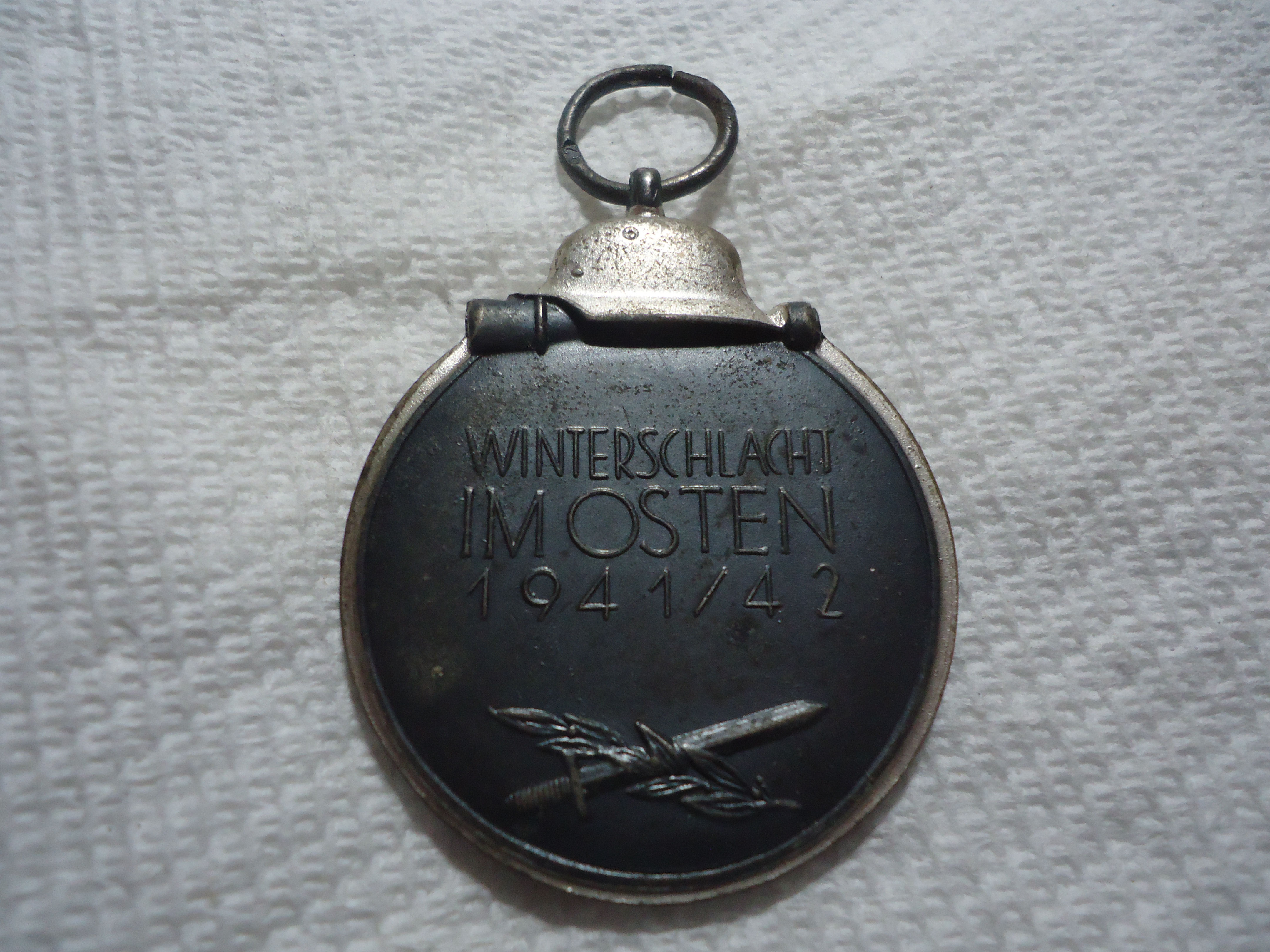 NEAR MINT, FULL FINISH, SHORT RIBBON, RUSSIA FRONT MEDAL, VERY NICE OVERALL MARKED 92 ON RING, JOSEF RUCKER & SON. WINTERSCHLACHT IM OSTEN 1941/42