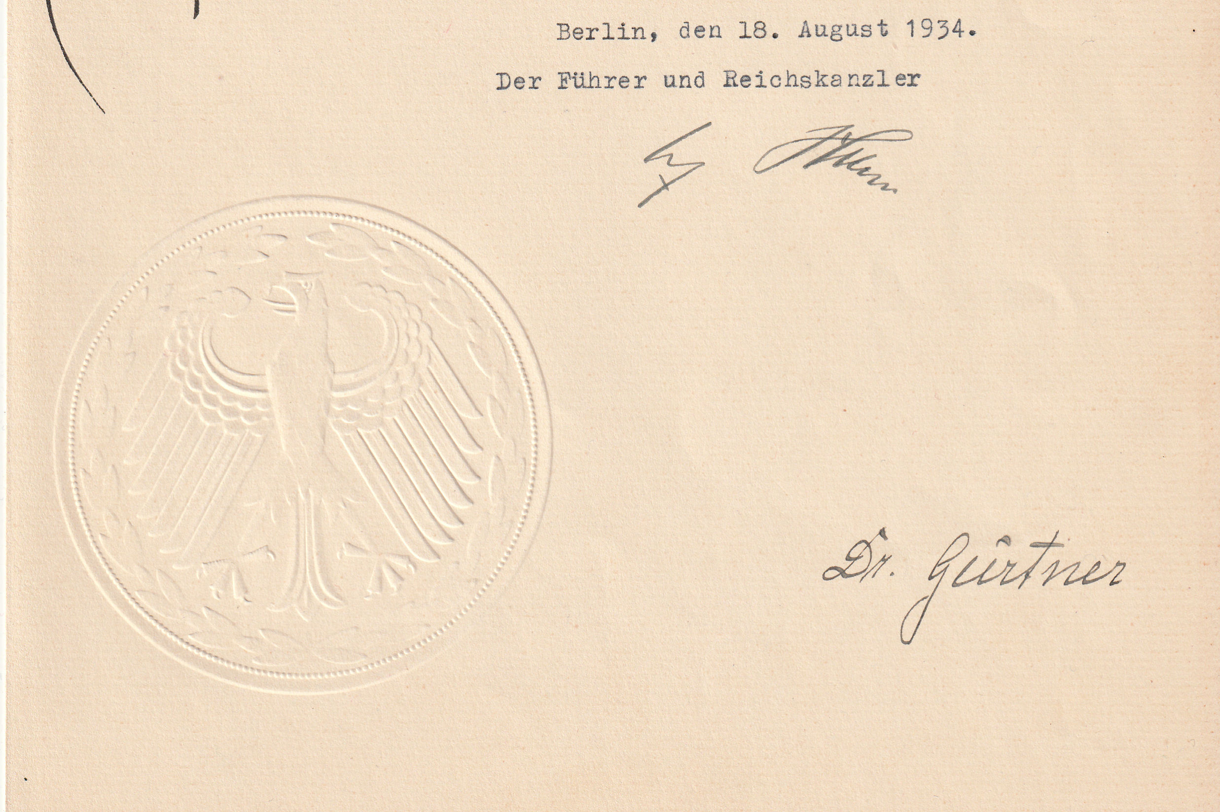 ADOLF HITLER SIGNED DOCUMENT 1934