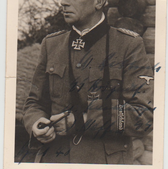 Great signed photo card SS-Obergruppenführer Wilhelm Bittrich, ink signed with rank and waffen ss dated 1940, card in good shape with small repaired tear mid left side, very nice and rare…..priced right